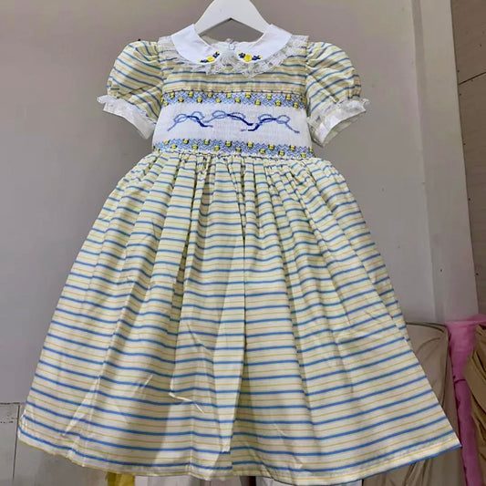 Lemon Blossom Matching Dress and Shirt Set- Blue,6M to 8T