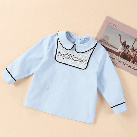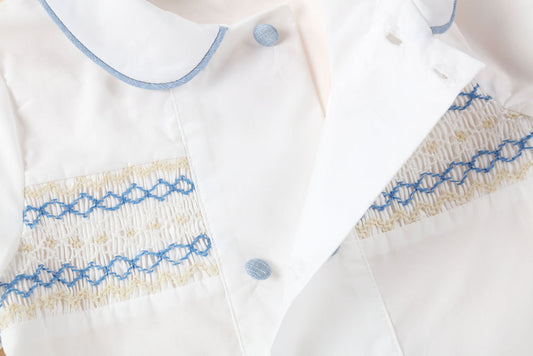 Blue & White Hand Smocked Boys Set,6M to 5T.