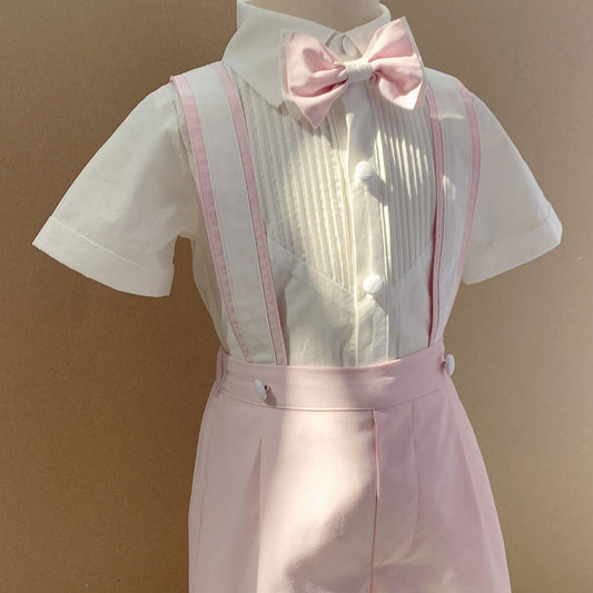 Pink & White Boys Suspender Set With Bow,12M to 5T
