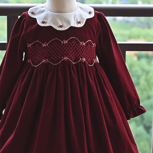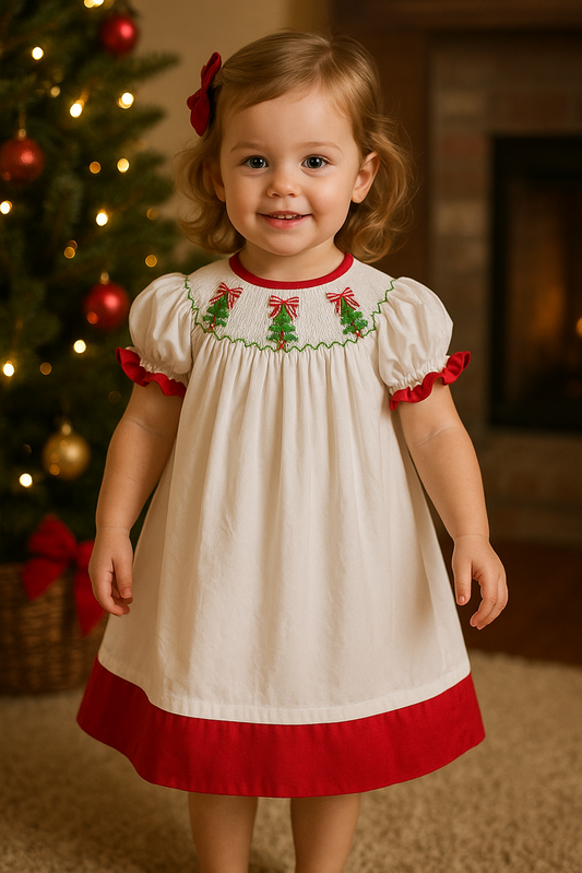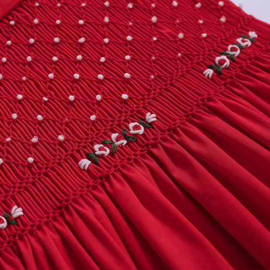 Hand-Smocked Christmas Bishop Dress (6M–8T)