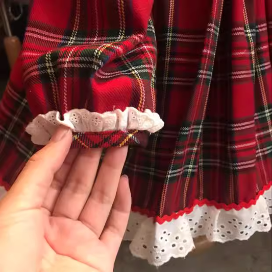 Red Tartan Lace Holiday Dress,12M to 8T