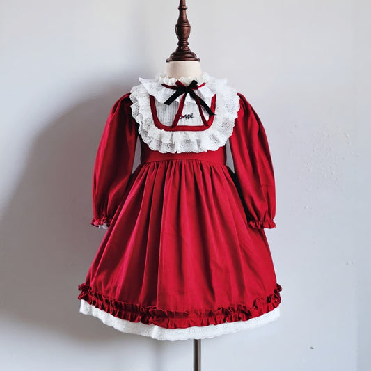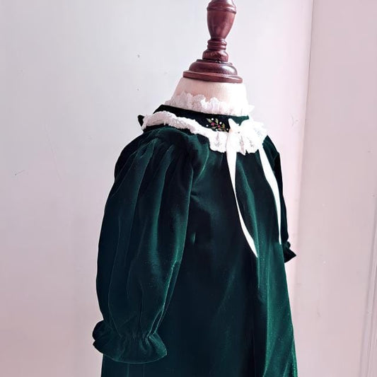 Elegant Red/Green Velvet Holiday Dress with Hand Embroidery,0M to 10T.