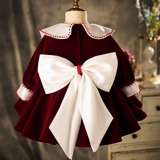Joyful Burgundy Holiday Season Baby Dress,12M to 6T.