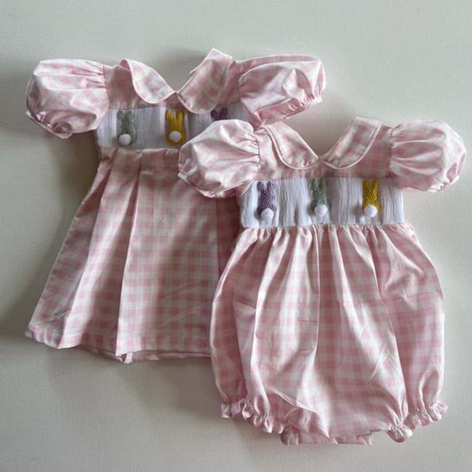Bunny Tail Smocked Dress & Onesie,3M to 8T.