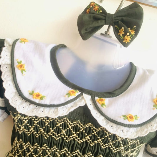 Stunning Green Hand Smocked Dress,6M to 6T.