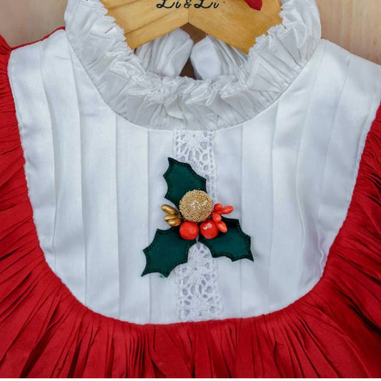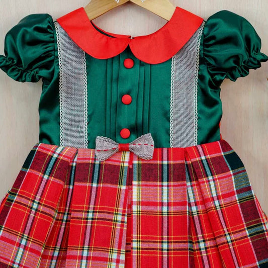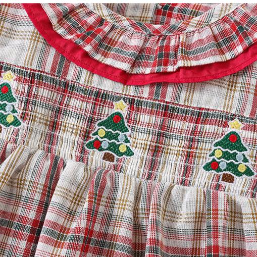 Festive Plaid Christmas Embroidered Dress,12M to 5T