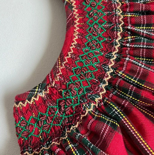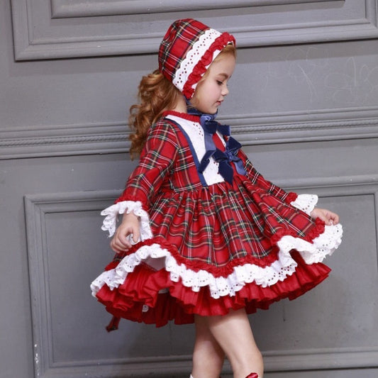 Red Plaid Vintage Spanish Dress with Hat & bloomers,12M to 12T.