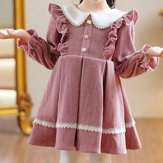 Full Sleeves Ruffles Dress,Pink/Red,2T to 8T.