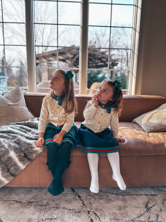Knitted cardigan & skirt set,12M to 6T.