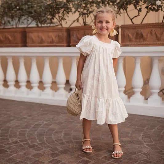 Adorable French Bow Knot Pleated Dress,2T to 7T.