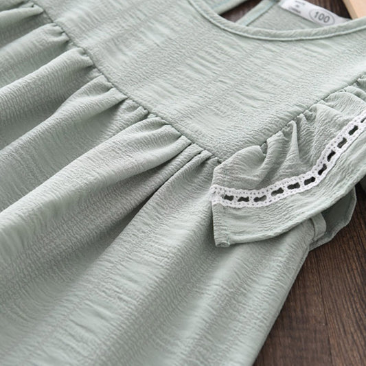 Cute Olive Color Summer Casual Dress,3T to 7T.