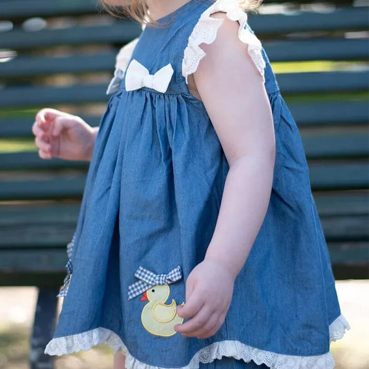 Cute Denim Dress With Embroidered Ducks,Cotton,12M to 6T.