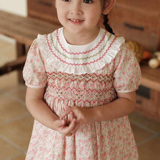 Pastoral Floral Hand Smocked Dress,12M to 7T.