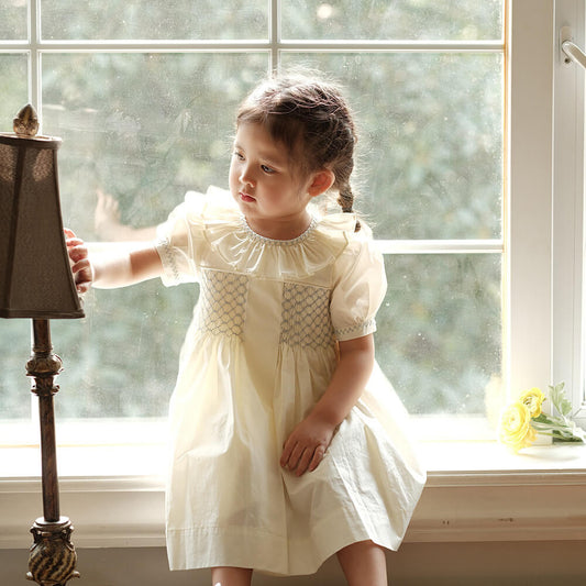 Stunning Off-White Hand Smocked Dress,2T to 7T.