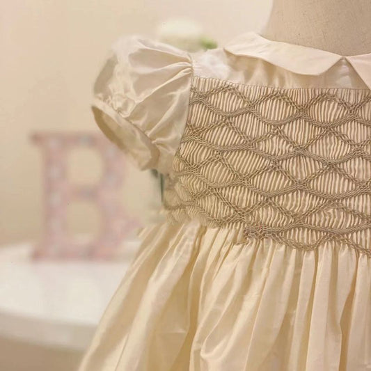 Gorgeous Hand Smocked Dress,Biege/Blue,12M to 8T