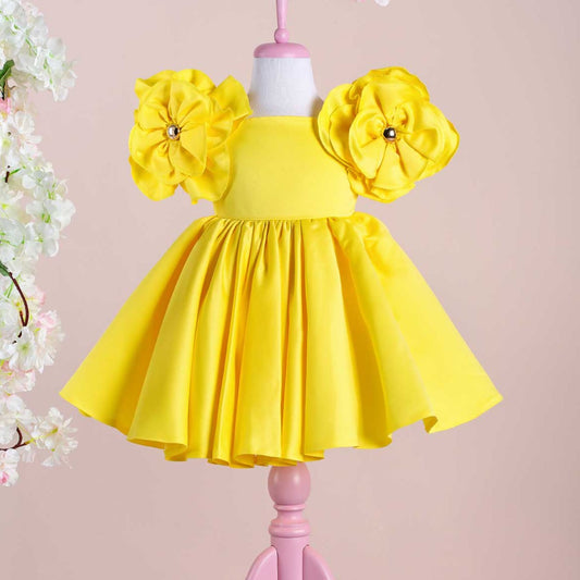 2Pc Beautiful Yellow Embroidered Puffy Spanish Dress,12M to 6T.
