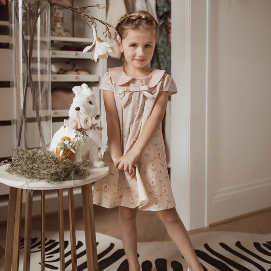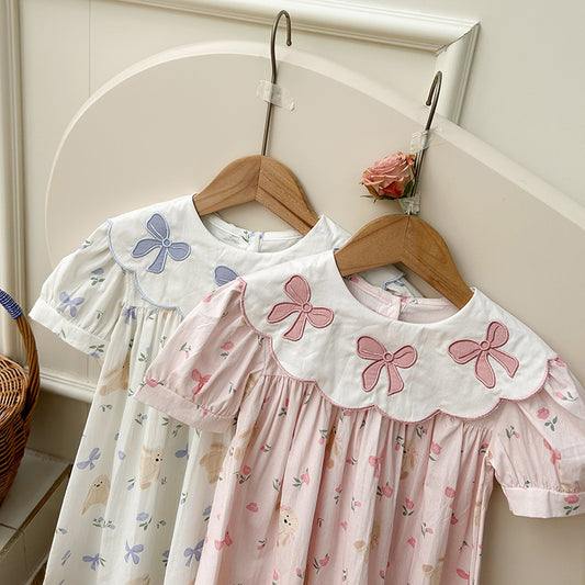 Adorable French Bow Knot Pleated Dress,2T to 7T.