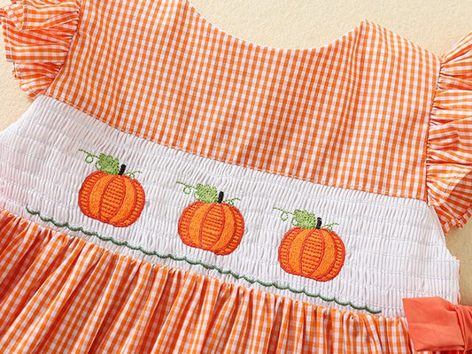 Cute Pumpkin Embroidered Dresses,12M to 5T.