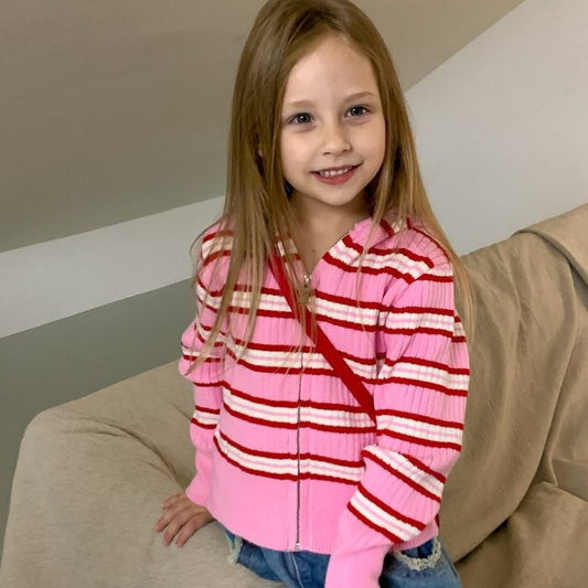 Cute Pink Stripped Zipper Sweatshirt,2T to 7T.