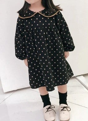 Cute Polka Dot Dress,Black/Beige,3T to 7T.