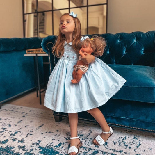 Gorgeous Solid Blue Hand Smocked Dress,12M to 6T.
