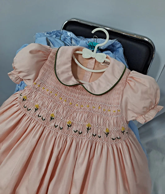 Hand Smocked Dress With Floral Embroidery,12M to 6T.