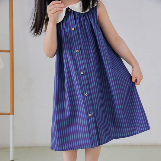 Adorable Scallop Collar Stripped Dress,2T to 8T.