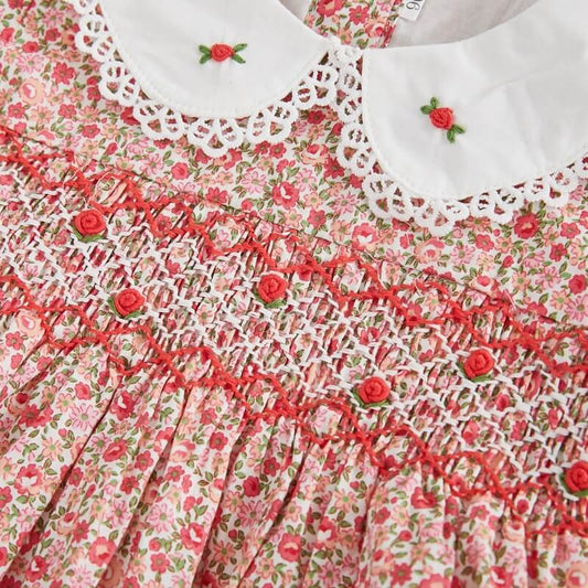 Beautiful Floral Hand Smocked Romper,3M To 3T.