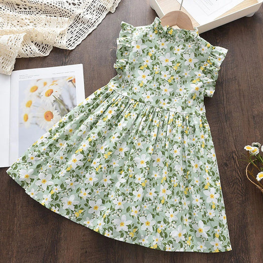 Spring/Summer Floral Dress,Green/Pink,2T to 6T.