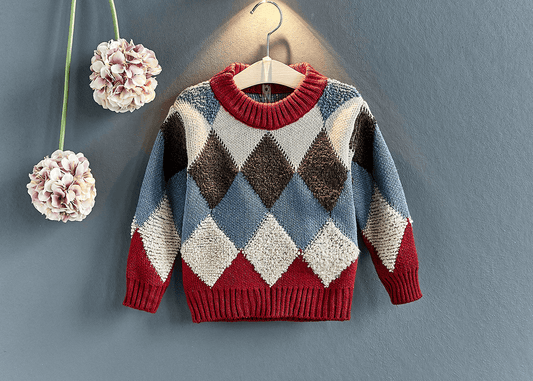 Unisex Knitted Warm Sweater For Kids,White/Red/Blue/Brown,2T to 10T.