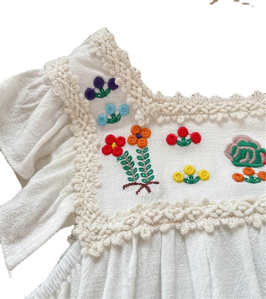 White Vintage Embroidered Dress,2T to 6T.