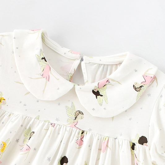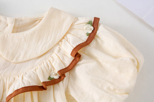 Cute Biege Peter Pan Collar Dress,2T to 6T.