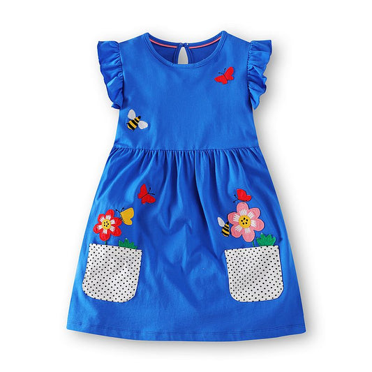 Cute Applique Dress,Cotton, 2 to 7Y.