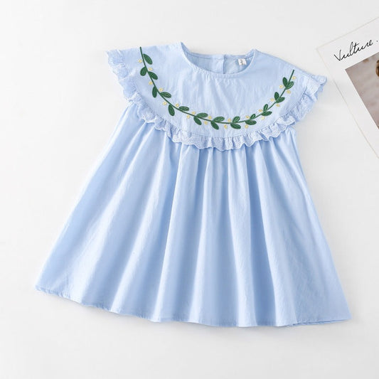 Cute Blue Embroidered Lace Dress,2T to 6T.
