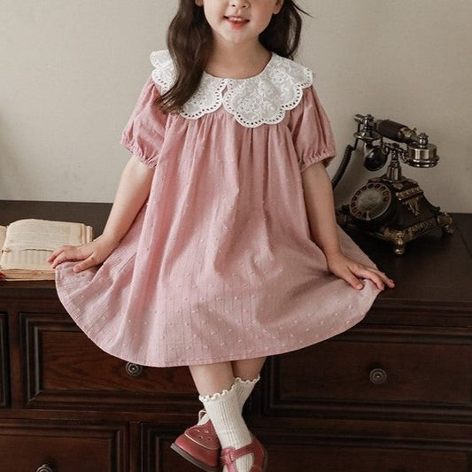Cute Peter Pan Collar Party Dress,Pink/White,12M to 8T
