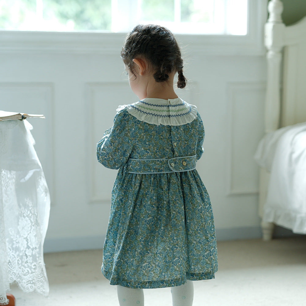 A gorgeous floral print with stunning hand smocking & hand embroidery. A high detailed dress with a beautiful collar & cute embroidery. A stunning dress made with love and must have!!